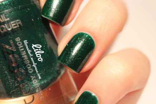 Il s’agit donc d’un joli vert (de saison je trouve car il me fait penser au vert sapin de Noël^^) qui est opaque en deux fines couches. Le séchage est très rapide et l’application est facile 🙂