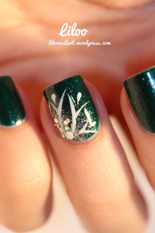 18. Il est très beau ce vernis, c’est vrai qu’il fait penser au sapin de Noël ! Et je suis loin de me lasser de tes accent nail, bien au contraire, il est une fois de plus magnifique et parfait avec cette base :).